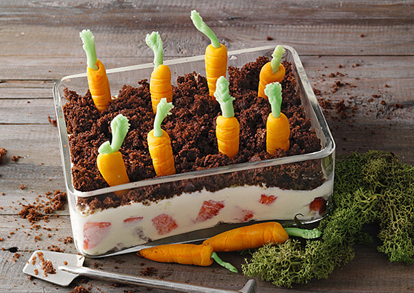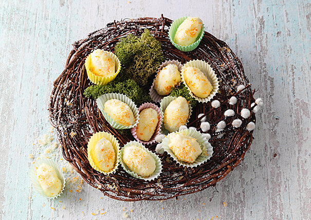 Frische Blumen, bei sonnigem Wetter die erste Kaffeetafel des Jahres im Garten und Aufbruchsstimmung Richtung Sommer: Zu Ostern feiern wir den Frühling! Für die Kinder gehört die fröhliche Suche nach kleinen Nestern mit Eiern und Schokohasen dazu, für alle der Genuss von leckeren Kuchen, lockerem Hefegebäck und feinen Pralinen. Das Ganze wird fröhlich bunt oder in zarten Pastelltönen gestaltet, mit Dekoeiern im Strauch und farbenfrohen Primeln oder Sträußen auf dem Tisch. Bei uns erstreckt sich die Deko bis in die süßen Genüsse und macht in Form von kleinen Marzipanmöhrchen, dekorativen Hasen-Keksen, eierförmigen Trüffeln oder einer frühlingsfrischen Biskuitrolle den Kaffeetisch zusätzlich zum Hingucker. Dass alles auch köstlich schmeckt, versteht sich von selbst!