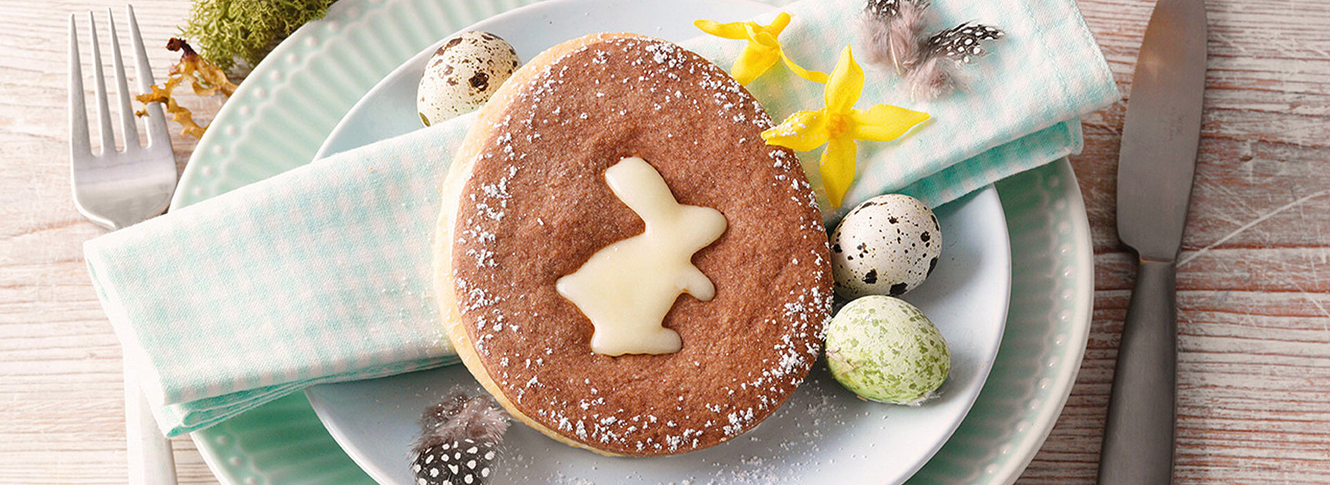 Zu Ostern feiern wir den Frühling! Oft sorgen Sonnenschein und milde Temperaturen zum Fest schon für gute Laune, aber sollte es doch mal regnen, holen wir uns die Sonne einfach auf den Tisch: mit feinen Kuchen und Torten, lockerem Hefegebäck, fruchtigen Desserts und niedlichen Hinguckern wie Keksen in Häschenform. Natürlich dürfen auch süße Eier und Pralinen nicht fehlen, denn sie eignen sich perfekt fürs Osternest. Hier haben wir für dich unsere Rezepte und Deko-Ideen rund um Ostern zusammengestellt, damit du für alle geselligen Momente die passende Köstlichkeit findest.