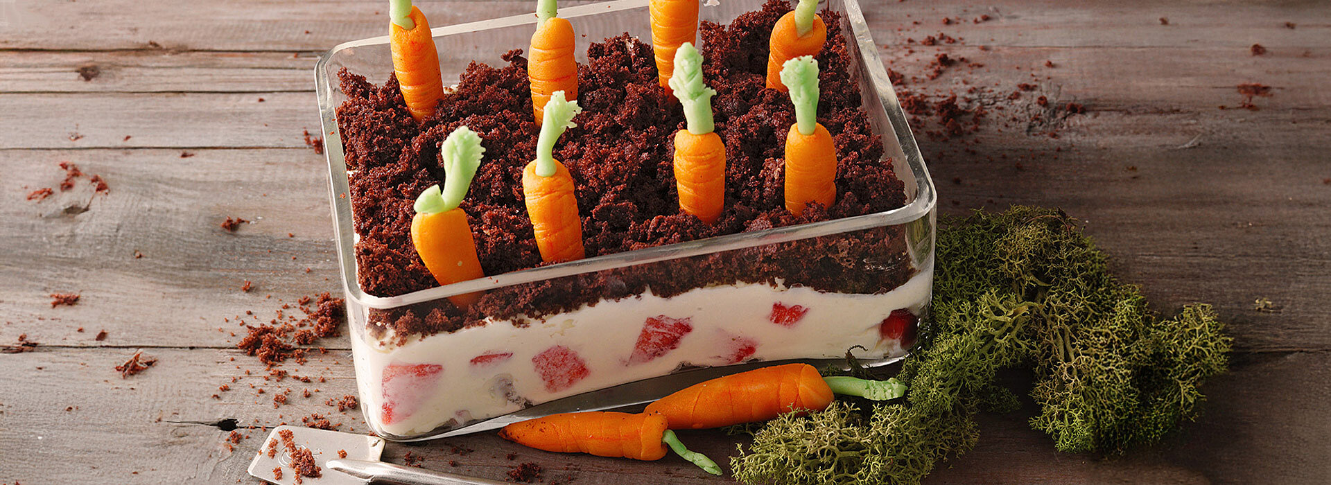 Runde dein Ostermenü mit köstlichen Desserts ab: Unsere Auswahl reicht von unkomplizierten Rezepten wie schnelles Kompott oder köstliche Panna cotta bis hin zum kreativen Schichtdessert mit selbst gemachten Marzipan-Möhrchen.